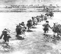 由北路向昌都挺进的部队,徒步涉水过同普的卡江