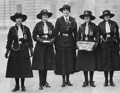英国女童子军总队长巴登-鲍威尔女士(中)和她的部下在女童子军成立数年后的合