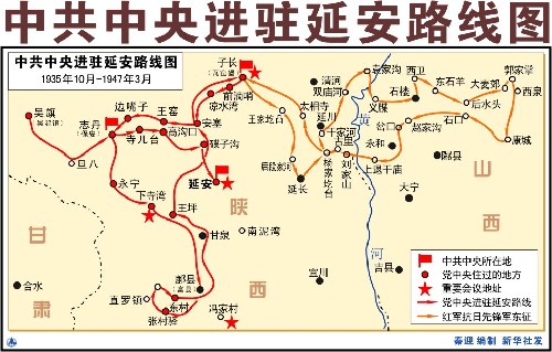 中共中央进驻延安路线图