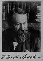 恩斯特-马赫(Ernst Mach),1838年~1916年,奥地利物理学家、哲学家、生物学家,1838年2月18日生于奇尔利茨。父亲是家庭教师。童年时代在大自然的魅力下善于用听觉、触觉观察事物的因果关系,初中时,他对教会学校的课程不感兴趣而被视为不适宜研究学问、成绩不佳的孩子。父亲的藏书成了他自学的宝库。在维也纳大学学习数学、物理学和哲学,1860年毕业,并获博士学位。1864~1867年在格拉茨大学先后任数学教授和实验物理学教授,1867~1895年在布拉格大学任实验物理学教授,两度被选为校长。1901年退休,但仍在家继续从事科学著述。1916年2月19日在德国特斯特腾逝世。