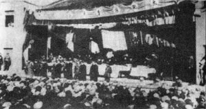 北京公审大贪污犯宋德贵的会场一角 1952年2月1日,北京市召开公审大会,公审7名大贪污犯。原公安部行政处处长宋德贵、原中国畜产公司业务处副处长薛昆山因贪污罪行严重(宋贪污6.4亿元以上,薛非法所得23亿元以上)又拒不坦白而被判处死刑。