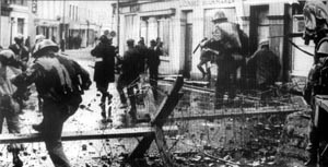 1972年2月23日英国大使馆已被示威者投掷的燃烧弹烧毁。示威者抗议英国伞兵在北爱尔兰杀害13名北爱尔兰人的罪行。抗议游行队伍在穿过都柏林大街时很有秩序,但在大部分人群到达英国大使馆时发生了暴乱。当示威者向坐落在梅林广场的乔治大楼投掷石块和燃烧弹时,许多警察都消极地站在一边。爱尔兰政府已宣布这天为全国悼念日,以纪念在伦敦德里游行示威中被英国士兵打死的13名爱尔兰人。本月末,在伦敦附近的一个伞兵军官食堂发生爆炸事件后,爱尔兰政府逮捕了8名爱尔兰共和军领导人,给这个非法组织一次沉重打击。