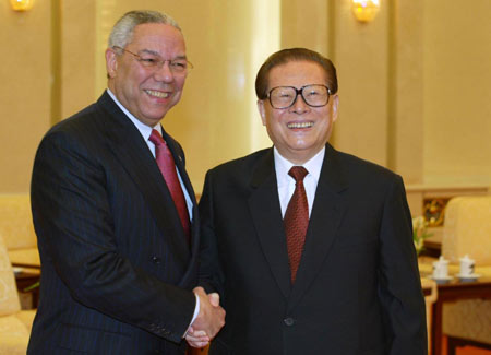 2003年2月24日 国家主席江泽民会见美国国务卿鲍威尔