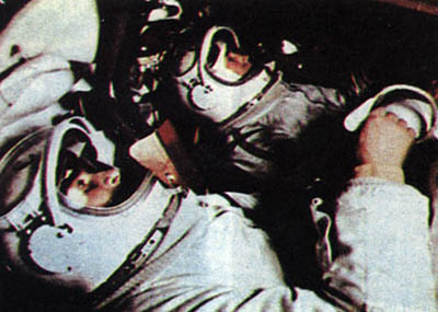 列昂诺夫在太空行走之前与贝里亚耶夫(左)在“上升”2号中