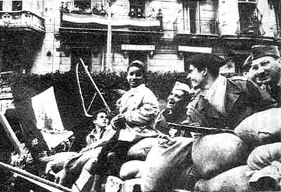 1962年3月26日,法国人和阿尔及利人签订停战协议,阿尔及利亚战争结束。图为身边是鲜血溅污的法国国旗,一名阿尔及利亚姑娘渴望和平。
