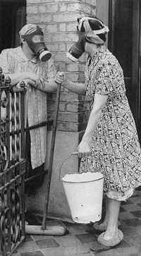 聊天时英国人也要预防敌机投放毒气弹