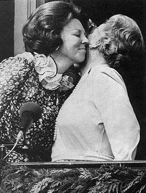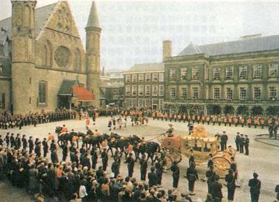 1980年4月30日,荷兰女王朱丽安娜今天在71岁寿诞退位,与此同时她的女儿比娅特丽克丝成为荷兰王国第6代君主。比娅特丽克丝今年42岁,以她的自由观点而著名。此时她的1300万臣民在政治与宗教问题上产生分歧。在庆典上那些无权而定居于公地上的人扔石块对住房问题表示了抗议。