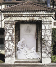 亨利杜南的墓 让亨利杜南(JeanHenriDunant,1828年5月8日-1910年10月30日),瑞士商人和人道主义者,红十字会创办人,后人尊称他为“红十字会之父”。1859年,在现在的意大利境内,他在出差途中目睹了索尔弗利诺战役的后果。后来,他在自己的著作《索尔弗利诺回忆录》中记录了自己的经历,书中的设想最终促成了1863年红十字国际委员会的创立。1864年的日内瓦公约也是以杜南的思想为基础。曾于1901年获得诺贝尔和平奖。 杜南撰写了UnSouvenirdeSolferino(《苏法利诺回忆录》,1862年11月8日出版),当中建议设立一个民间中立的救援组织,以便在战争发生时,能及时救助在战场上受伤的伤兵。出版后,杜南周游欧洲各国来推展他的想法,他的提议得到了法国大作家雨果的声援,甚至连拿破仑三世都赞同他。后来日内瓦公共福利协会主席古斯塔莫瓦尼埃(GustaveMoynier)注意到了这本书,并在1863年2月9日的会议中提出来讨论。随后他们组织了包括杜南与莫瓦尼埃在内的五人小组来开始进行研究杜南的构想的可行性。同年十月,瑞士赞助了一个国际会议以讨论实行杜南的想法的方法,共有16个国家参与了这次的会议。在1864年有12个国家签署了该文件,成为国际红十字会和首个日内瓦公约的基础。 1901年,他和弗雷德里克帕西(国际和平联盟和各国议会联盟创办人)同获首届诺贝尔和平奖。关于其得奖有些争议,红十字会的创始来自杜南,可是他竟然被遗忘了。有些人建议他应取医学奖,因为那是红十字会的基本贡献。虽然晚期的杜南很贫穷,但他是他一直没有动用诺贝尔奖所提供的奖金,最后他把大部分的奖金捐给了挪威与瑞士的慈善事业。 杜南晚年贫病交加,就一直住在疗养院。1910年10月30日晚上10时,杜南因病去世。死后依其遗愿火葬,将骨灰埋在苏黎世;没有人送葬,更别说是葬礼。他的墓碑上没有墓志铭,只有一幅大理石浮雕:一个救护者跪在一个垂死之人的旁边,喂着他生命的甘露。1948年,也就是杜南逝世之后38年,国际红十字协会理事会决定把5月8日,也就是亨利杜南先生的生日,定为“世界红十字日”。