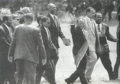 10月15日,流亡3年的总统阿里斯蒂德在美国国务卿克里斯托弗陪同下返回海地执政。联合国通过决议取消对海地禁运,美国宣布于12月1日撤出其2.1万名驻海地官兵中的7000名,并保证1996年2月底前撤出全部军队。1 1月8日,海地参、众两院一致任命的总理斯马克-米歇尔及其新内阁宣誓就职,海地难民陆续返回家园,长达4年之久的海地危机暂时平息下来。