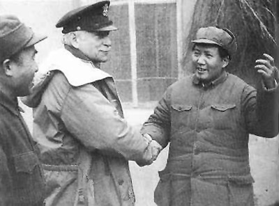 1944年11月,毛泽东、朱德在延安会见美国总统罗斯福的私人代表赫尔利。