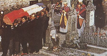 覆盖着法国国旗的灵柩被送至科龙贝墓地