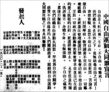 中国自由运动大同盟宣言