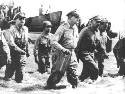 1944年10月25日,麦克阿瑟率领盟军把日本人赶出菲律宾