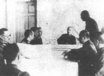 国民政府在南京召开最高国防会议,共商抗日大计,中坐者为蒋介石
